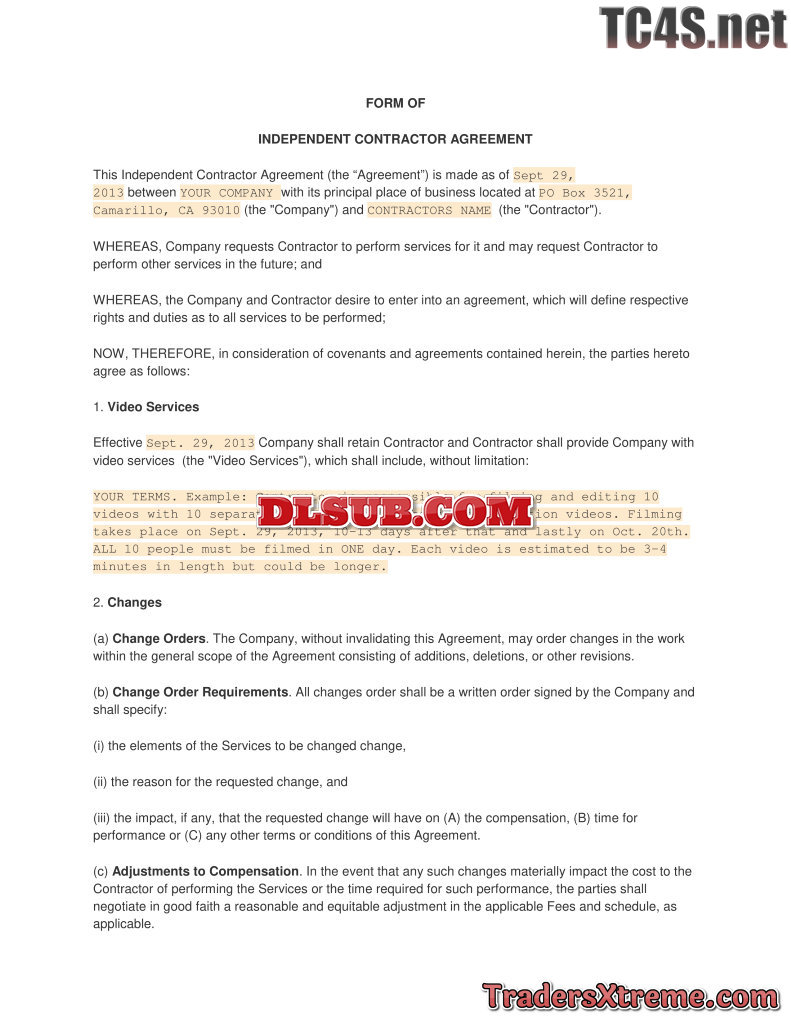 Hiring Video Contractor Contract - JPG Image File