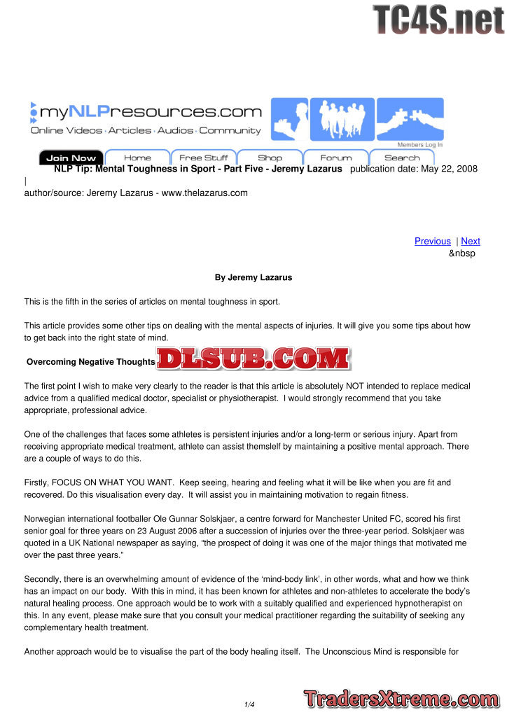 Mental Toughness In Sport Part Four Jeremy Lazarus - JPG Image File