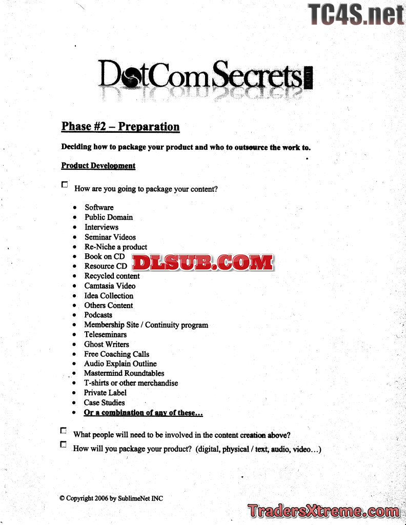 Dotcomsecrets Checklist