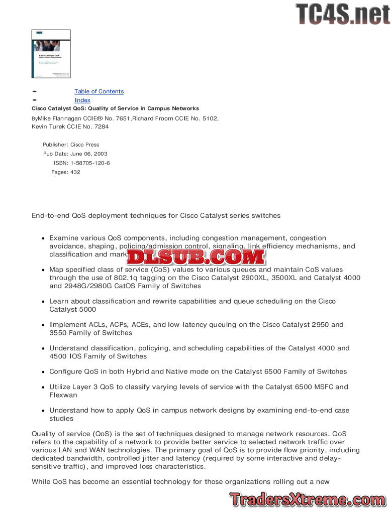 Cisco Press Cisco Catalyst Qos Quality Of Service In Campus Networks - JPG Image File