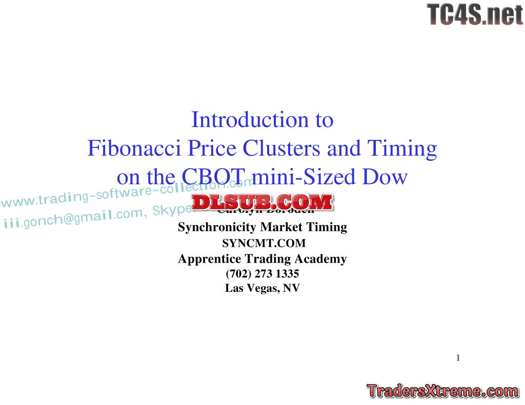 Carolyn Boroden Introduction To Fibonacci Price Clusters And Timing On The CBOT Mini Sized Dow 01 - JPG Image File