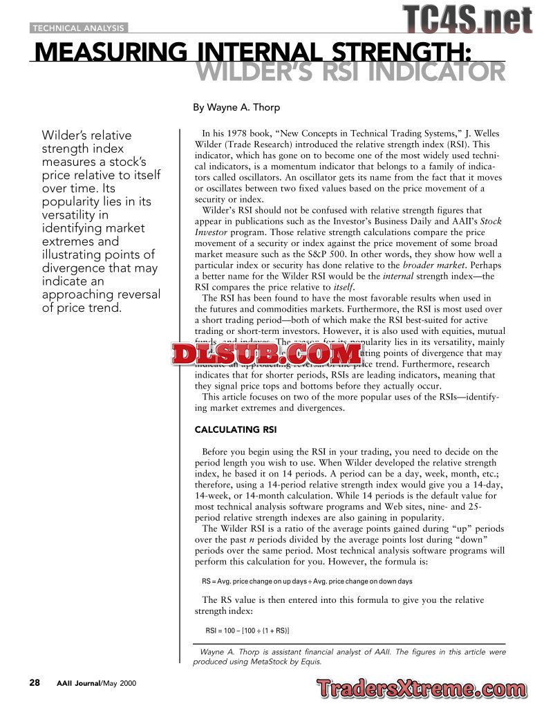 Wayne A Thorp Measuring Internal Strength Wilders Rsi Indicator - JPG Image File