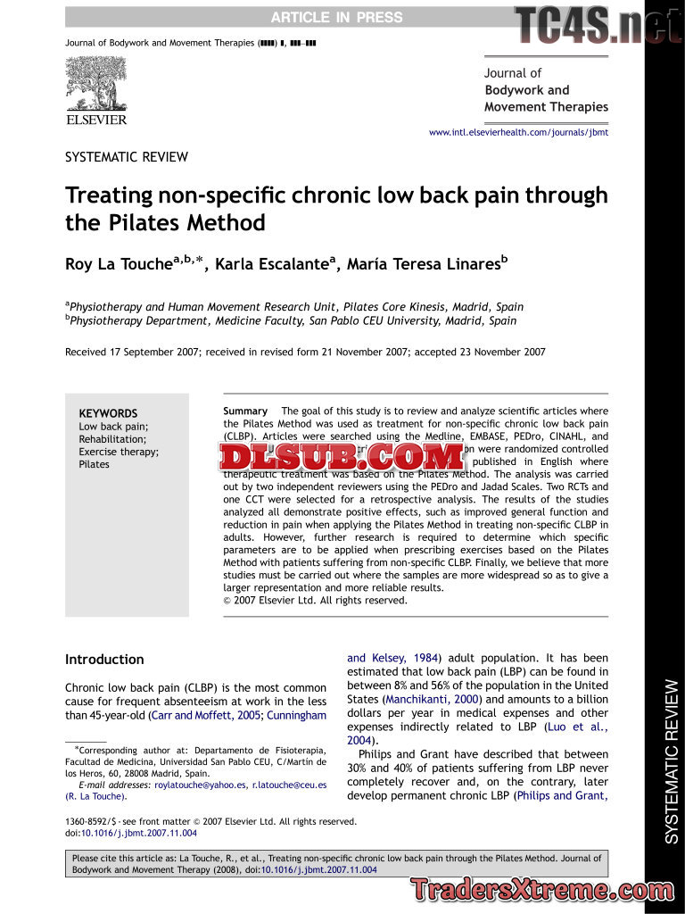 Treating Non Specific Chronic Low Back Pain Through The Pilates Method - JPG Image File