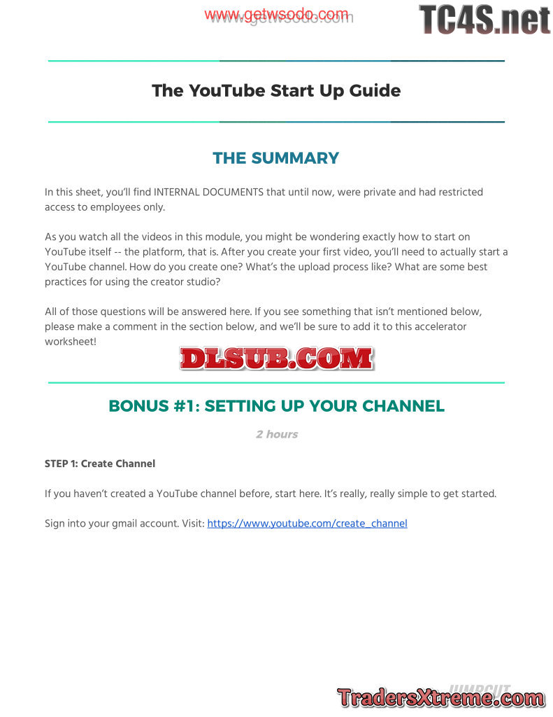 10 The Youtube Start Up Guide Worksheet - JPG Image File