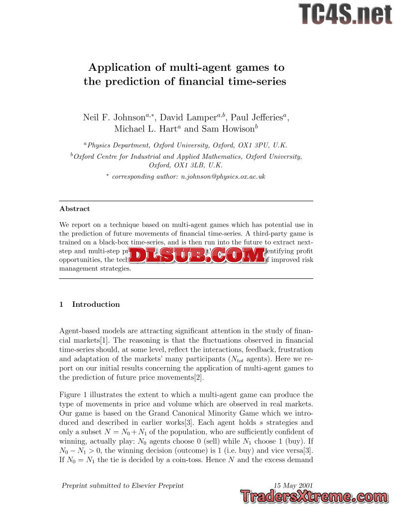 Application Of Multi Agent Games To The Prediction Of Financial Time Series - JPG Image File