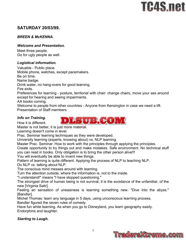 Paul Mckenna Breen Bandler Nlp Master Prac Notes - JPG Image File
