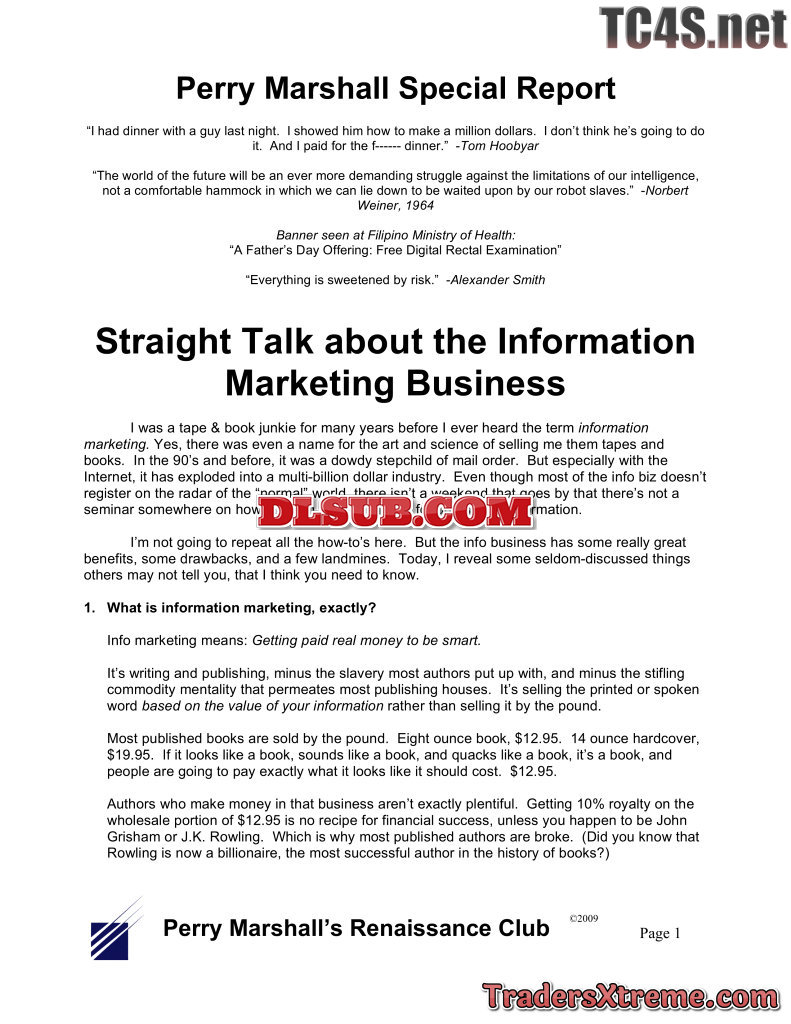 Straight Talk On Information Marketing - JPG Image File