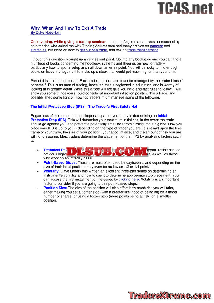 Duke Heberlein Why When And How To Exit A Trade Daytradersdvd