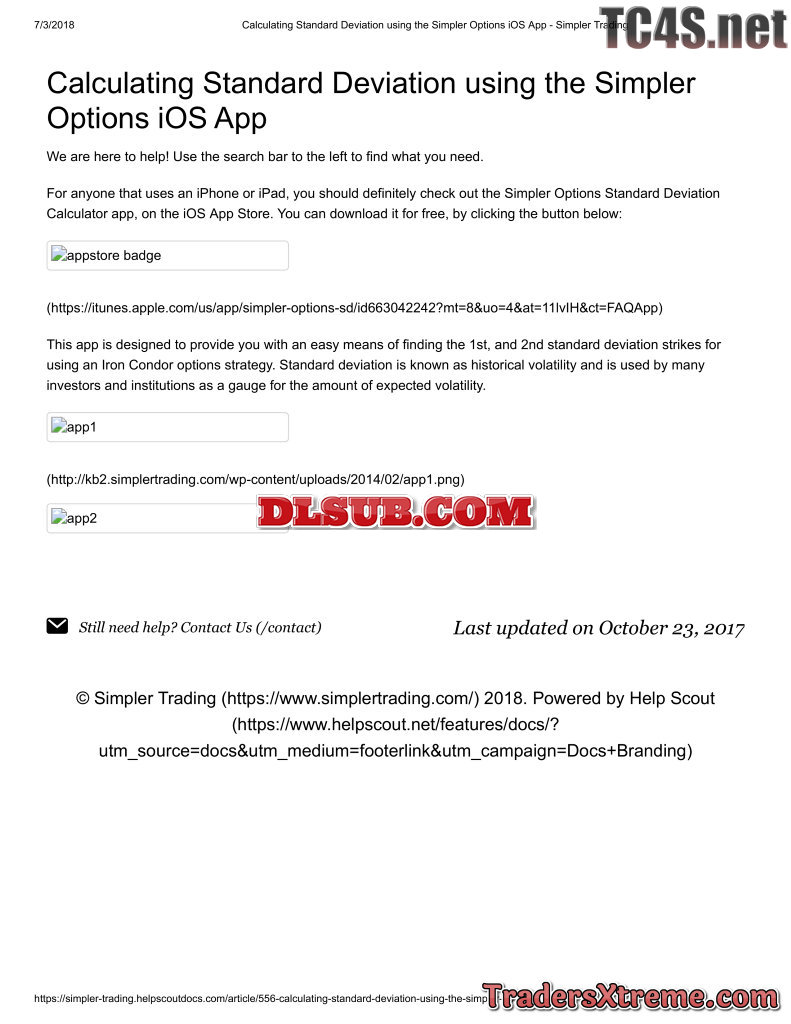 Calculating Standard Deviation Using The Simpler Options Ios App Simpler Trading - JPG Image File