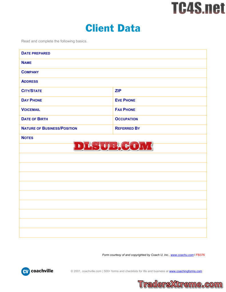 Basic Client Information Data Sheet - JPG Image File