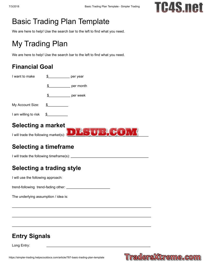 Basic Trading Plan Template Simpler Trading - JPG Image File