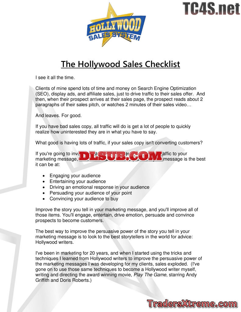 Hollywood Sales Checklist - JPG Image File