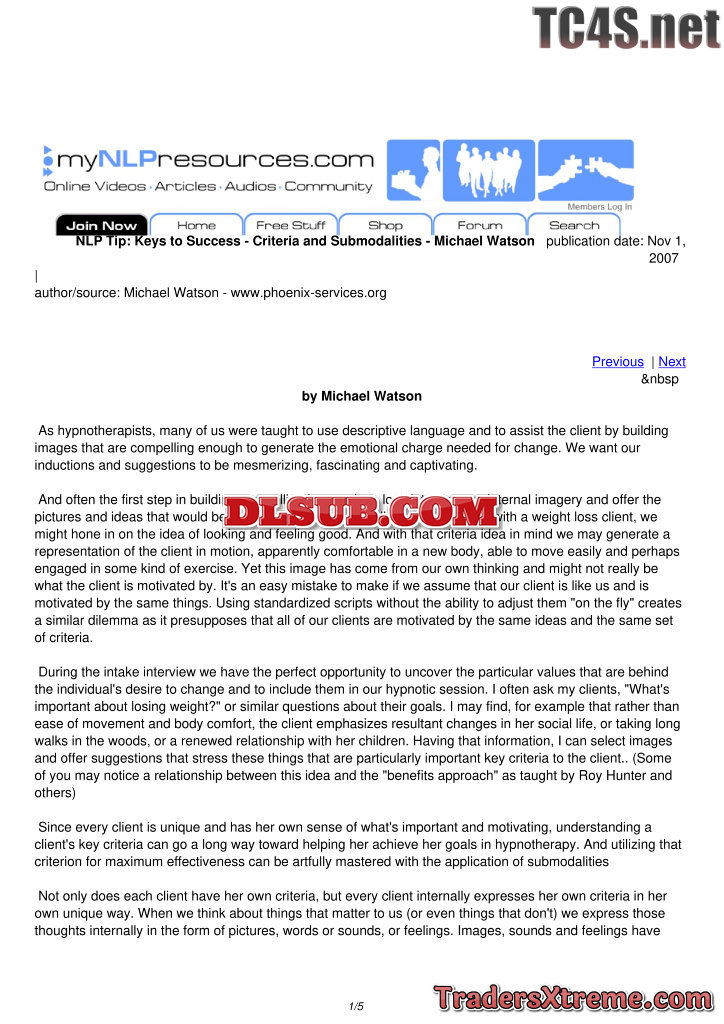 Keys To Success Criteria And Submodalities Michael Watson - JPG Image File