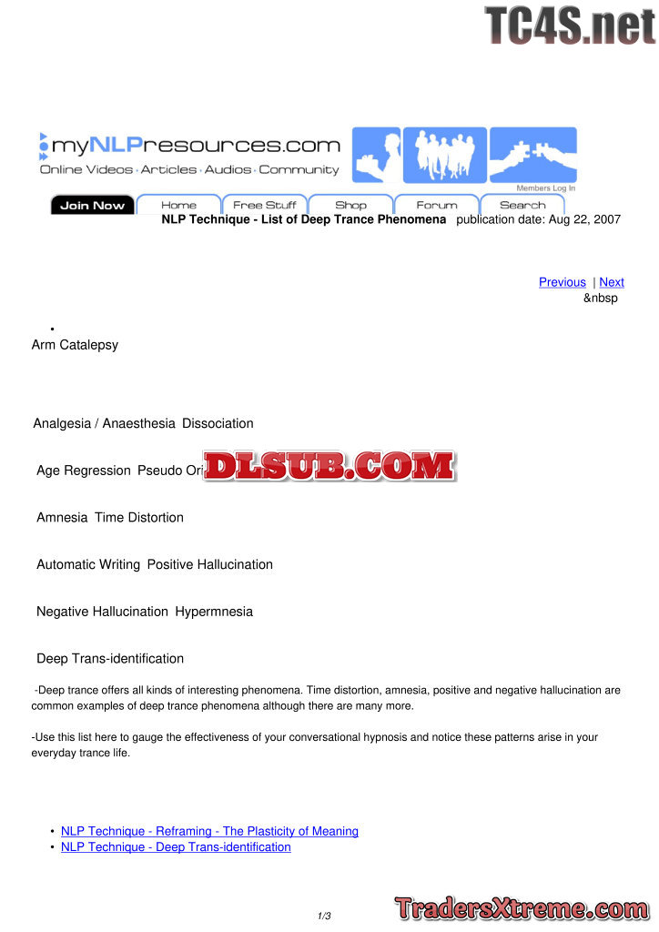 List Of Deep Trance Phenomena - JPG Image File