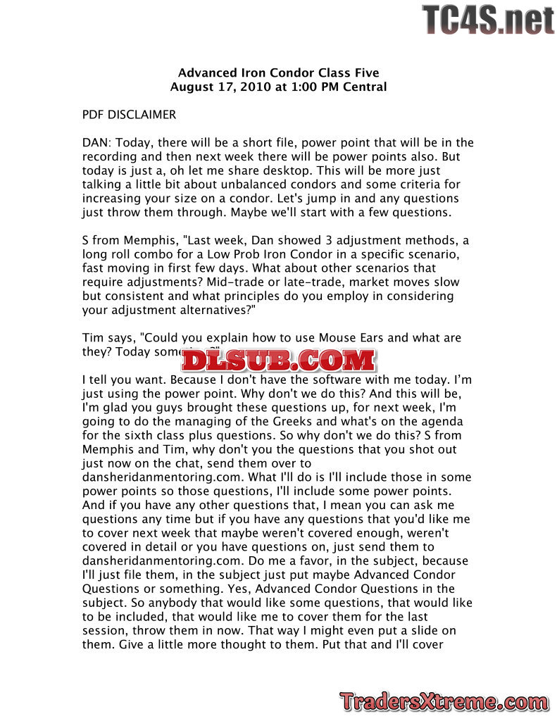 Dan Sheridan Advanced Iron Condor Course Usd 68