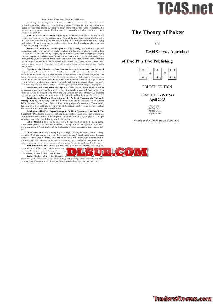 David Sklansky The Theory Of Poker