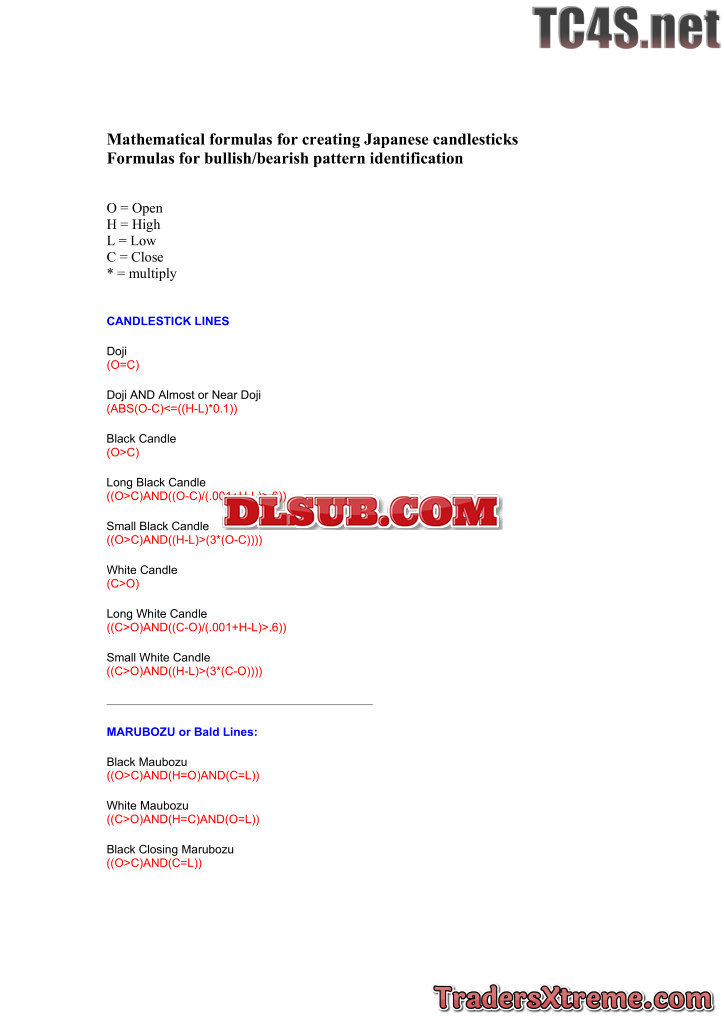Mathematical Formulas For Creating Japanese Candlesticks